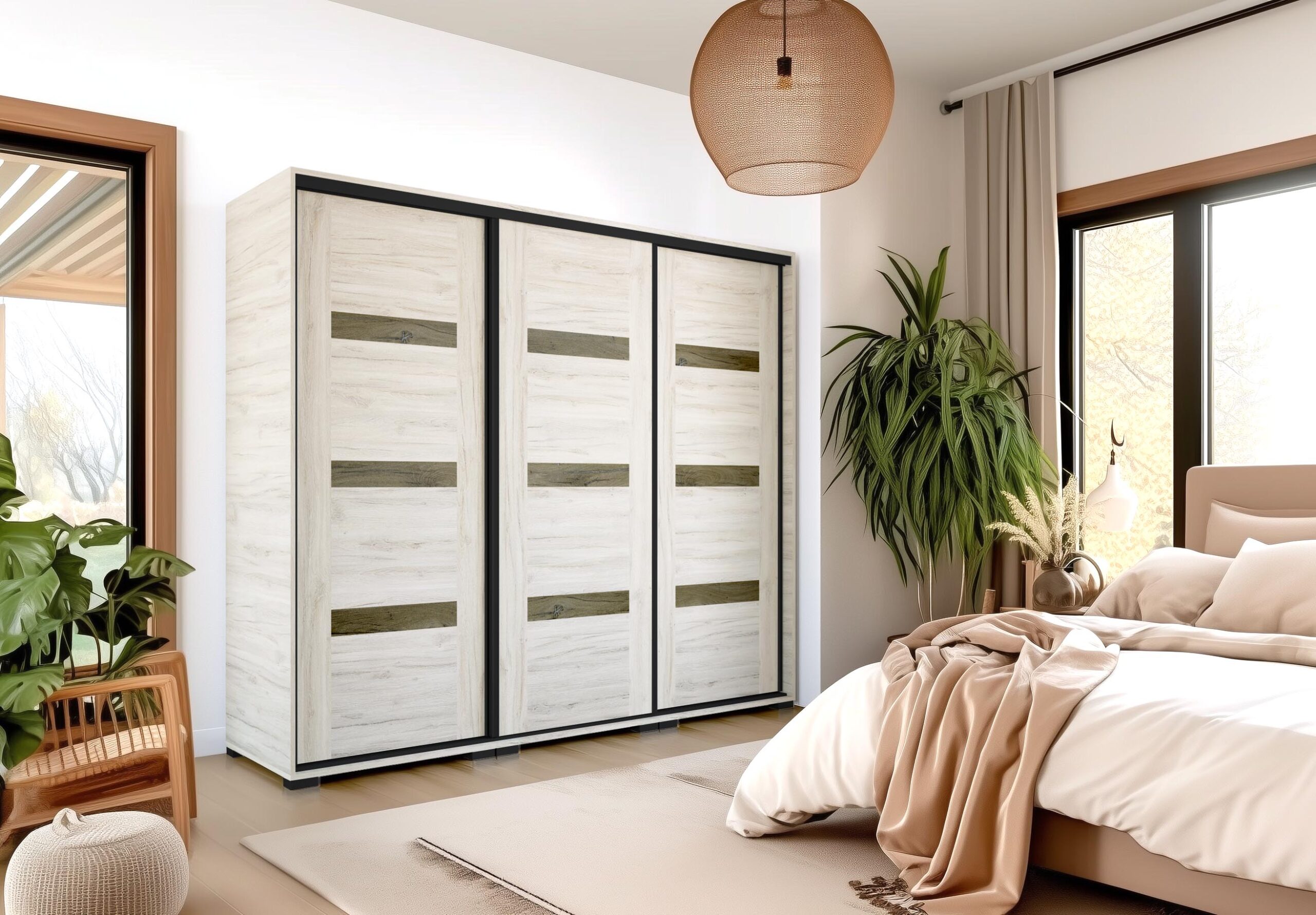 A Capri gardrób 160, 239 és 318 cm-es kivitelben kapható, san remo-canterbury vagy justus tölgy-sötés justus tölgy színvariációban. Esztétikus megjelenése mellett a tárolási kapacitása sem elhanyagolható. Opcionálisan választható termékek: – sarokpolc – tolóajtós sarokelem – fózolt tükör – tükör – fiókos alsó magasító – tolóajtós felső magasító.